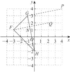 作法:(1) 将边$GH$绕着点$G$逆时针旋转$90^{\circ}$得到$GP$; (2) 将线段$GP$平移,使得点$G$与点$F$重合,此时点$P$的对应点为点$Q$; (3) 连接$FQ$交$GH$于点$N$,则点$N$为所求.