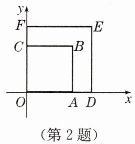 2. 如图,正方形 $ OABC $ 与正方形 $ ODEF $ 为位似图形,$ O $ 为位似中心,相似比为 $ 1:\sqrt{2} $,点 $ A $ 的坐标为 $ (1,0) $,则点 $ E $ 的坐标为(