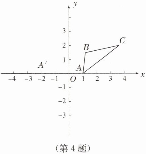 4. 如图,原点 $ O $ 是 $ △ ABC $ 和 $ △ A'B'C' $ 的位似中心,点 $ A(1,0) $ 与点 $ A'(-2,0) $ 是对应点. $ △ ABC $ 的面积是 $ \frac{3}{2} $,则 $ △ A'B'C' $ 的面积是