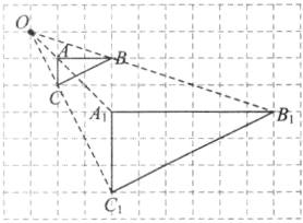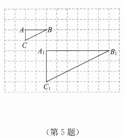 5. 如图,在 $ 11×8 $ 的正方形网格图中,$ △ ABC $ 与 $ △ A_1B_1C_1 $ 的顶点都在小正方形的格点上,且这两个三角形关于点 $ O $ 位似.