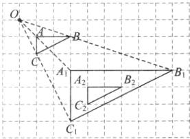 $\therefore$位似比$k=\frac{OA'}{OA}=\frac{|-2|}{|1|}=2$。