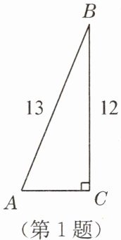 由勾股定理得:$AC=\sqrt{AB^{2}-BC^{2}}=\sqrt{13^{2}-12^{2}}=5$。