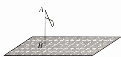 画出旗杆 $AB$,在地面上选取一点 $C$,使得从 $C$ 点可以直接看到旗杆顶部 $A$,连接 $AC$。