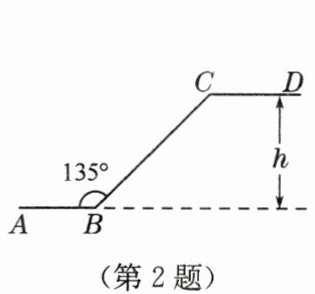 2. 如图是手扶电梯示意图,其中AB,CD分别表示一楼、二楼电梯口处地面的水平线,∠ABC=135°,BC的长约是5√2 m,则乘电梯从点B到点C上升的高度h是