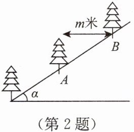 2. 如图,城关镇某村准备在坡角为α的山坡上栽树,要求相邻两树之间的水平距离为m米,那么这两树在坡面上的距离AB为(