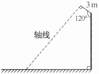 已知灯臂 $PQ = 3$ m,灯臂与灯柱成 $120^{\circ}$ 角,即 $∠ QPN = 120^{\circ}$,所以 $∠ QPM = 60^{\circ}$。