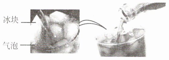 8. 将某碳酸饮料拧开,倒入装有冰块的杯中,如图所示。下列分析合理的是(