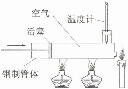 7. 已知蜡烛的着火点约为$190^{\circ}C$,蜡烛的火焰由气态蜡燃烧形成。如图所示,在温度计示数为$280^{\circ}C$以上时,快速推动活塞,观察到蜡烛立即熄灭。蜡烛熄灭的主要原因是(