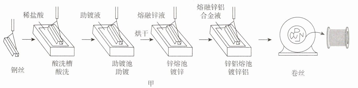 一种超高强度锌铝合金镀层钢丝生产的主要工序如图甲所示: