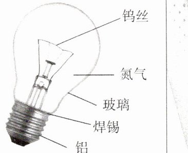 5. 右图标出的是有关灯泡组成的物质,请根据右图回答下列问题。