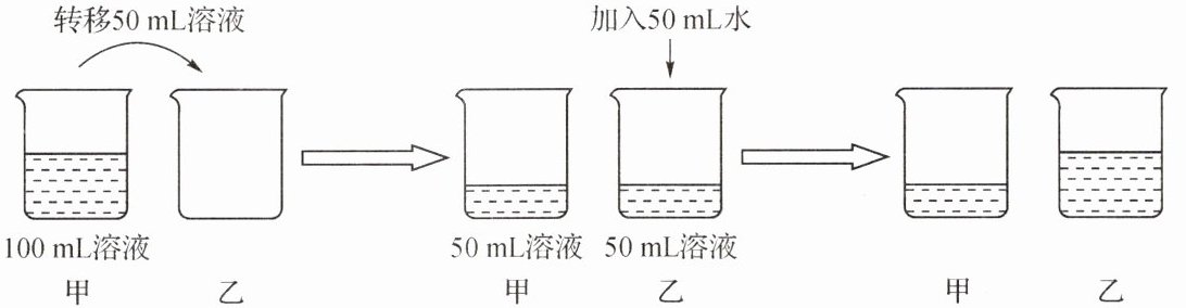3. 室温时,对$ 100\ mL $氯化钠饱和溶液做如下操作,最终甲、乙两烧杯中溶液(