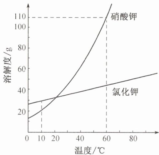 8. 硝酸钾(KNO₃)和氯化钾(KCl)的溶解度曲线如图所示,根据图示回答下列问题。