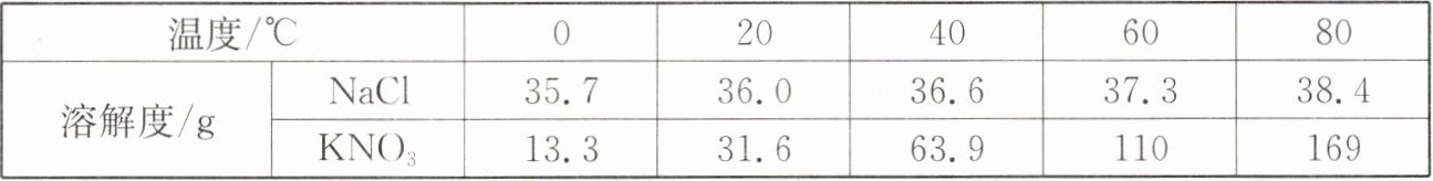 氯化钠和硝酸钾在不同温度时的溶解度数据表