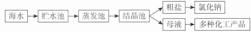 [分析交流] 同学们获悉采用“盐田法”进行海水晒盐的工艺流程如图所示。目前从海水中提取食盐主要将海水引入蒸发池,经日晒蒸发使海水浓度变大。