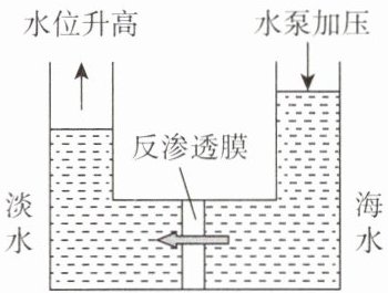 [咨询专家] 同学们通过数字化平台向海洋专家进行了咨询。专家介绍,海水淡化使用了反渗透膜淡化技术,其工作原理如图所示。