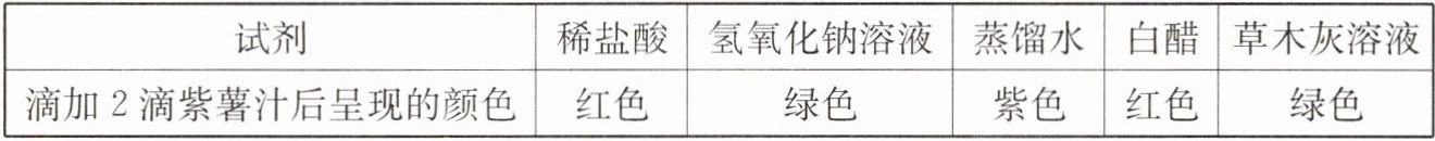 实验小组同学分别向下列试剂中滴加自制紫薯汁,现象记录如下: