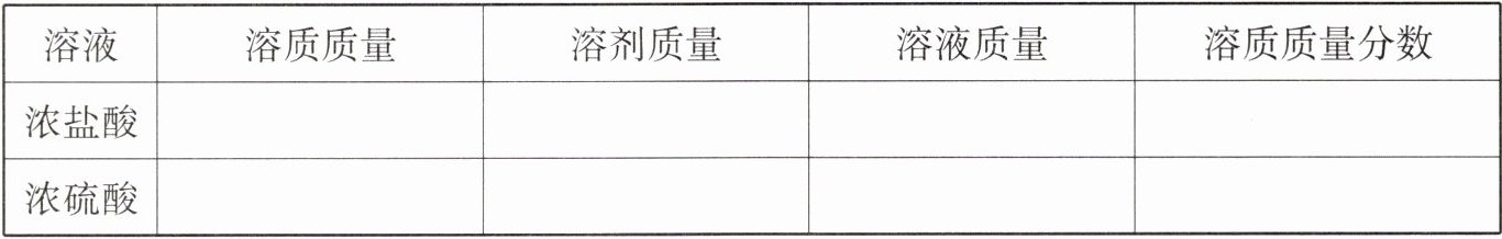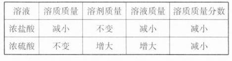 1. 把浓硫酸、浓盐酸敞口放置在空气中,时间稍长,会有什么变化(不考虑水分的蒸发)?讨论并完成下表: