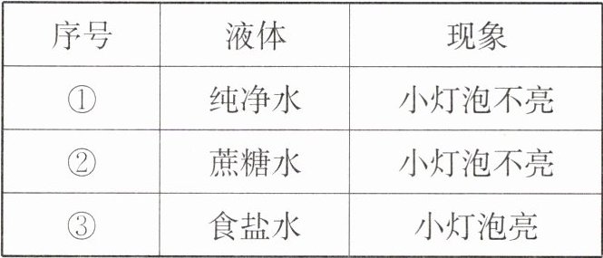 (2)请从微观角度解释蔗糖水不导电、食盐水能导电的原因。
