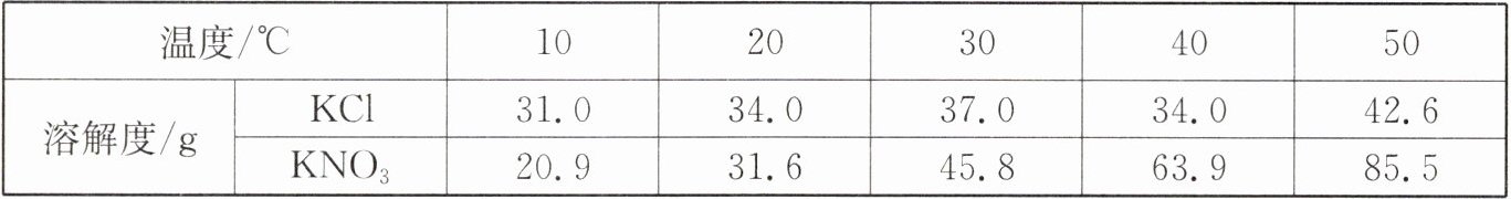 10. $KCl$与$KNO_{3}$在不同温度下的溶解度数据如表所示。下列说法正确的是(