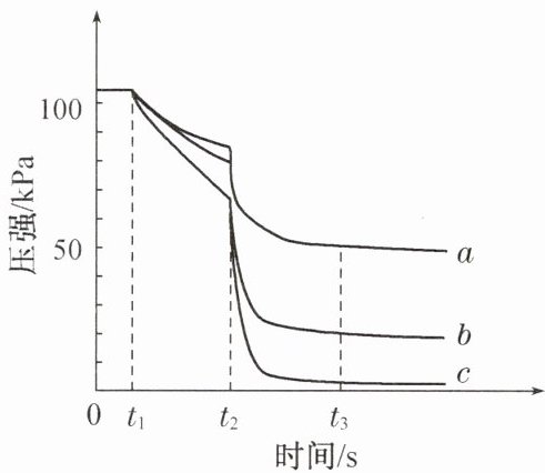 C.$a$、$b$、$c$三种曲线所示的实验中,$t_{3}$时烧瓶内压强由大到小的顺序是$a>b>c$