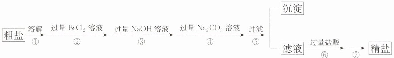 18. 现有一定质量含有少量泥沙等不溶性杂质和少量$Na_{2}SO_{4}$、$MgCl_{2}$、$CaCl_{2}$等可溶性杂质的粗盐样品。某实验小组利用化学实验室常用仪器对该粗盐样品进行提纯,提纯步骤如下:
