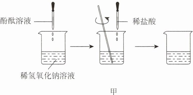 进行实验:如图甲所示,在烧杯中加入稀氢氧化钠溶液,滴入几滴酚酞溶液,然后用滴管慢慢滴入稀盐酸,并不断搅拌溶液。