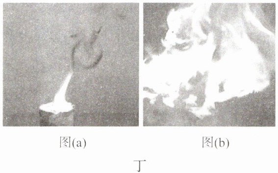 ① 分别取两份等体积的航空煤油,一份放在金属瓶盖内点燃[图丁(a)],一份用喷壶喷成细雾状后点燃[图丁(b)]。结合实验现象分析,燃烧室内将航空煤油喷成细雾状使其充分燃烧的目的是