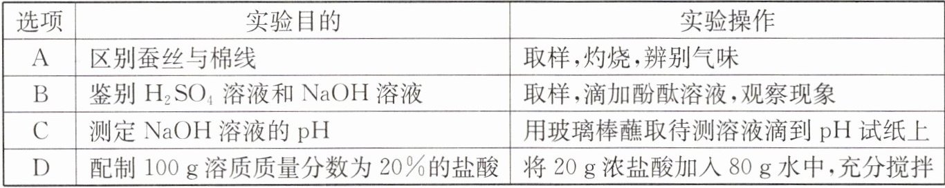 8. 下列实验操作不能达到实验目的的是(