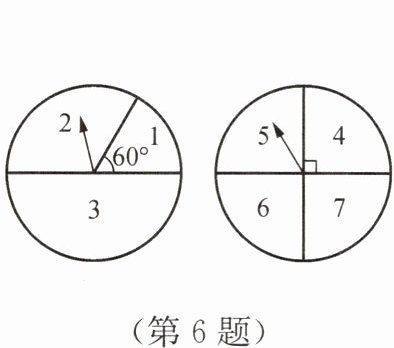 6. 同时转动如图的两个转盘,停止后指针所指的两数之积是2的倍数或3的倍数的概率为(