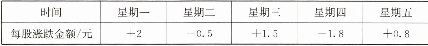 答案:解:(1)星期二收盘价为25+2-0.5=26.5(元/股)
