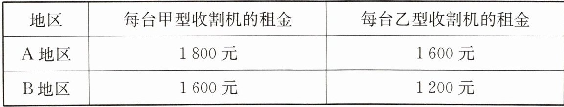3. 某农机租赁公司共有 $ 50 $ 台联合收割机,其中甲型 $ 20 $ 台,乙型 $ 30 $ 台. 现将这 $ 50 $ 台联合收割机派往 $ A $、$ B $ 两地区收割小麦,其中 $ 30 $ 台派往 $ A $ 地区,$ 20 $ 台派往 $ B $ 地区. 两地区与该农机租赁公司商定的每天的租赁价格见下表: