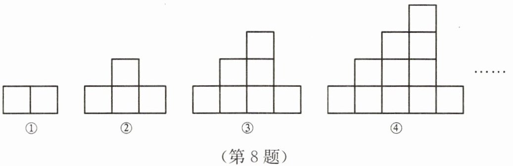 8. 下列图案均是由长度相同的小木棒按一定的规律拼搭而成:搭第 1 个图案需 7 根小木棒,搭第 2 个图案需 13 根小木棒,依此规律,搭第 11 个图案需小木棒是(