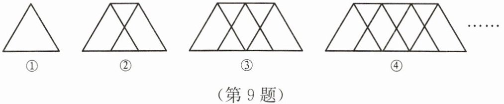 9. 下图是一组按照某种规律摆放成的图案.第⑤个图形中三角形的个数是(