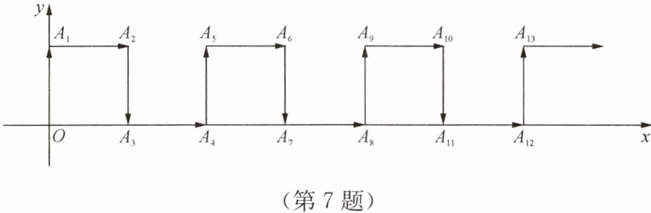 7. 如图,在平面直角坐标系中,一动点从原点 $ O $ 出发,按“向上、向右、向下、向右”的过程循环往复不断运动,每次都是移动 1 个单位长度,得到点 $ A_{1}(0,1)、A_{2}(1,1)、A_{3}(1,0)、A_{4}(2,0)······ $ 那么点 $ A_{4n + 1} $( $ n $ 为自然数)的坐标是