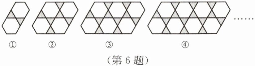 6. 如图是由形状相同的正六边形和正三角形镶嵌而成的一组有规律的图案,则第 $ n $ 个图案中阴影小三角形的个数是