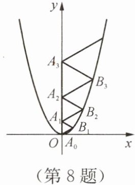 8. 二次函数 $ y = \frac{2}{3}x^{2} $ 的图像如图所示,点 $ A_{0} $ 位于坐标原点,点 $ A_{1} $、$ A_{2} $、$ A_{3} $、$ ··· $、$ A_{10} $ 在 $ y $ 轴的正半轴上,点 $ B_{1} $、$ B_{2} $、$ B_{3} $、$ ··· $、$ B_{10} $ 在二次函数 $ y = \frac{2}{3}x^{2} $ 位于第一象限的图像上.若 $ \triangle A_{0}B_{1}A_{1} $、$ \triangle A_{1}B_{2}A_{2} $、$ \triangle A_{2}B_{3}A_{3} $、$ ··· $、$ \triangle A_{9}B_{10}A_{10} $ 都是等边三角形,则 $ \triangle A_{9}B_{10}A_{10} $ 的边长是