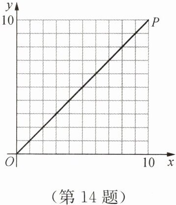 14. 如图,在平面直角坐标系中画有一个 $ 10 × 10 $ 的正方形网格.如果二次函数的图像与线段 $ OP $ 的两个交点 $ M $、$ N $ 及顶点都是网格的格点,且 $ MN = 3\sqrt{2} $,那么满足上述条件的二次函数共有(