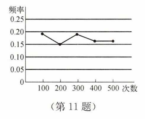 11. 某小组做“用频率估计概率”的试验时,统计了某一结果出现的频率,绘制了如图的折线统计图. 符合这一结果的统计试验最有可能的是(