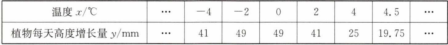 由这些数据,科学家推测出植物每天高度增长量 $ y $ 是温度 $ x $ 的函数,且这种函数是反比例函数、一次函数和二次函数中的一种.