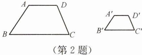 2. 如图,梯形 $ABCD$ 与梯形 $A'B'C'D'$ 相似,$AB = 10$,$AD = 8$,$CD = 9$,$A'B' = 5$,$B'C' = 7$,则 $BC=$