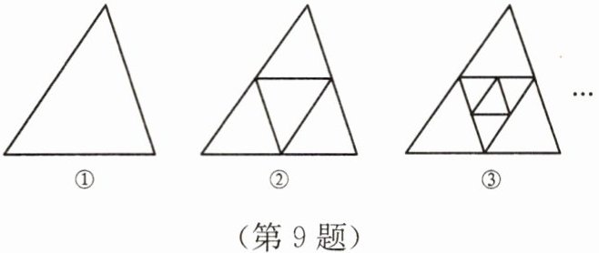 9. 右面一组图形中的三角形都是相似三角形. 根据其规律,图⑩中共有