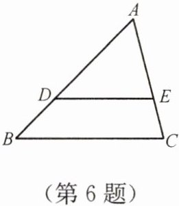 6. 如图,$\triangle ADE \backsim \triangle ABC$,且 $AD:DB = 2:1$,则 $DE:BC$ 为(
