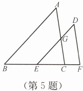5. 如图,点$B$、$E$、$C$、$F$在一条直线上,$DE // AB$,$DF // AC$。写出图中的相似三角形: