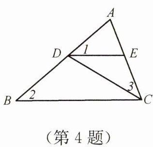 4. 如图,在△ABC 中,点 D 在 AB 上,点 E 在 AC 上,且∠1=∠2=∠3. 图中有