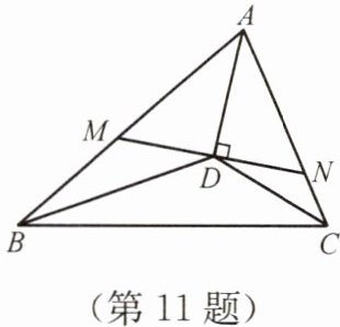 11. 如图,在△ABC 中,三个内角的平分线交于点 D,过点 D 作 AD 的垂线分别交 AB、AC 于点 M、N. 试说明:△MBD∽△DBC∽△NDC.