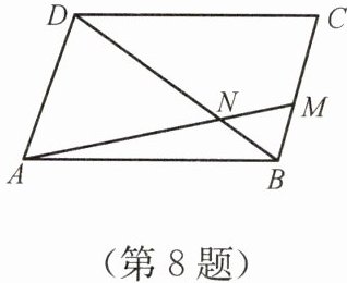 8. 如图,在 $□ ABCD$ 中,点 $M$ 在边 $BC$ 上,$AM$ 与 $BD$ 相交于点 $N$,且 $AM:NM = 4:1$.