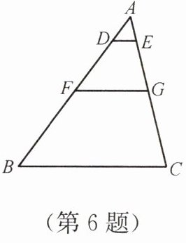 6. 如图,在 $\triangle ABC$ 中,$DE// FG// BC$,$AD:DF:FB = 1:2:3$,则 $S_{\triangle ADE}:S_{\mathrm{四边形}DFGE}:S_{\mathrm{四边形}FBGG}=$