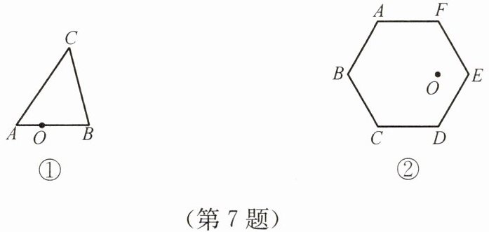 (2)如图②,将正六边形 $ ABCDEF $ 缩小 $ 50\% $,且位似中心选在形内的点 $ O $ 处.