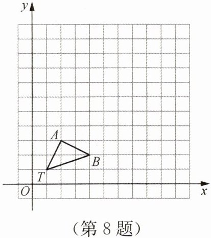 8. 如图,已知 $ \triangle TAB $ 的顶点坐标分别为 $ T(1,1) $、$ A(2,3) $、$ B(4,2) $.