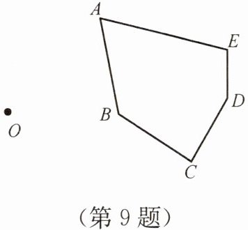 9. 如果两个位似多边形的位似中心在连接两个对应点的线段之外,这样的位似图形叫做外位似;如果它的位似中心在连接两个对应点的线段上,这样的位似图形叫做内位似. 如图,以点 $ O $ 为位似中心,画出五边形 $ ABCDE $ 的外位似图形和内位似图形,且相似比为 $ 1:2 $.